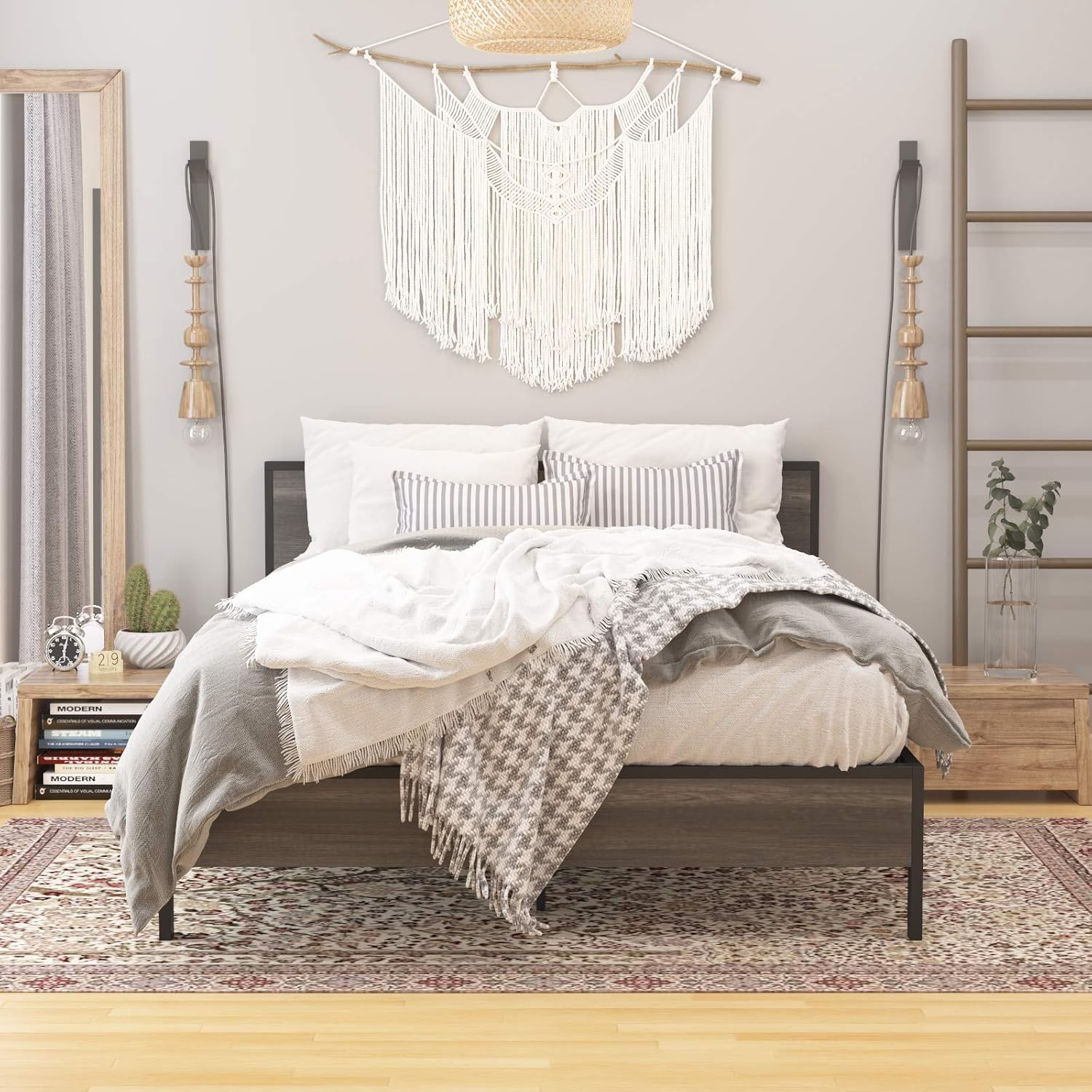 Amazon Com Weehom Metal Platform Bed Frame With Wood Headboard And Footboard Under Storage 14 Inch Beds Mattress Foundation Under Bed Storage No Box Spring Needed Noise Free Queen Furniture Decor